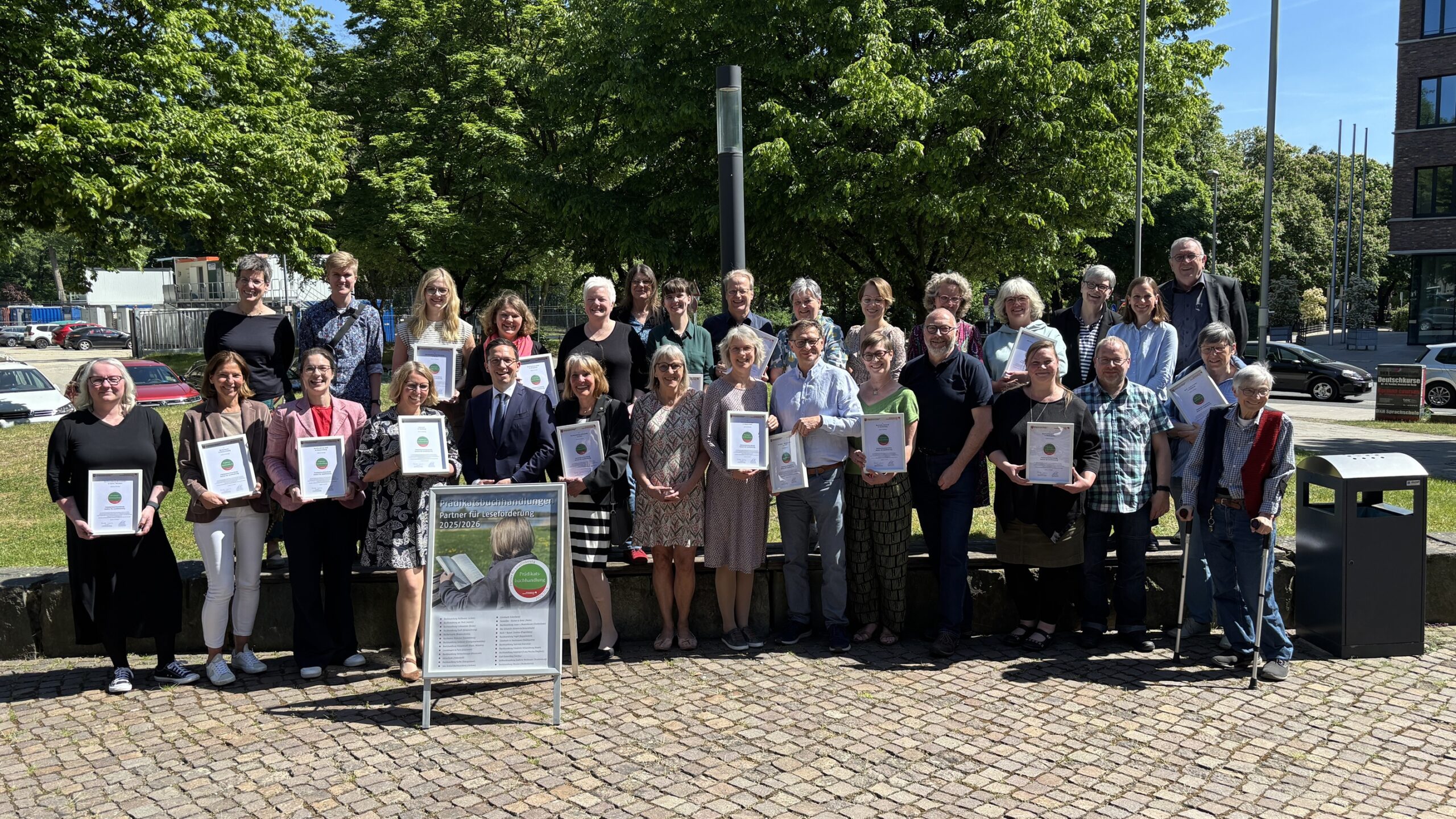 Buchhandlungen spielen bei der Leseförderung eine wichtige Rolle. Niedersachsens Kulturminister Falko Mohrs verlieh am Montag, 12. Mai 2025, 26 niedersächsischen Buchhandlungen die Auszeichnung „Prädikatsbuchhandlung – Partner für Leseförderung“. Der Landesverband Nord des Börsenvereins des Deutschen Buchhandels vergibt das Siegel in Zusammenarbeit mit dem Nds. Kulturministerium alle zwei Jahre an Buchhandlungen, die sich mit ihren Angeboten und Projekten insbesondere an Kinder und Jugendliche wenden.