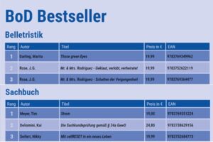 Alle Neueinsteiger:innen auf der Belletristik-BoD-Bestsellerliste im August 2025 haben Romance-Titel