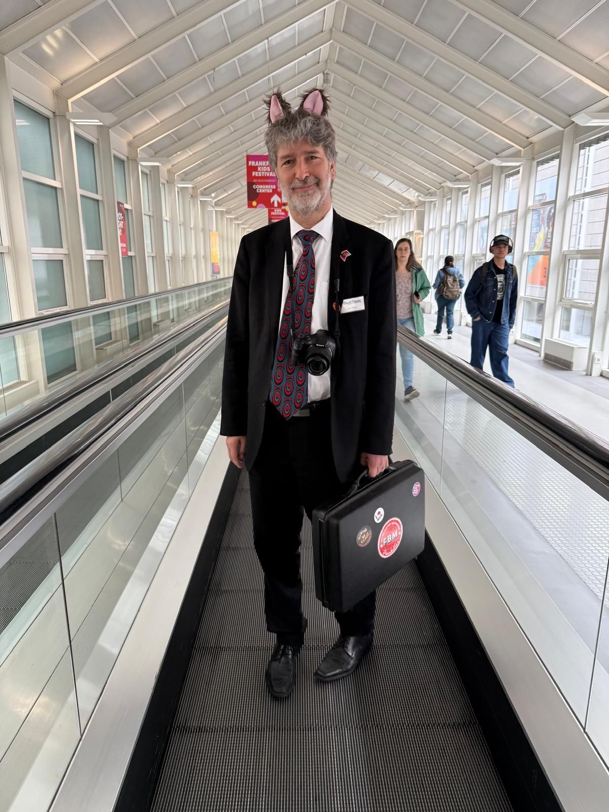 Aber tatsächlich läuft mir noch Stefan Könemann über den Weg! Der kleinste unserer größten Barsortimenter hatte sich schon zweimal für den Posten des Verbandsvorstehers angeboten, und dieser nette Mann war noch nie im Messe-Mayer!