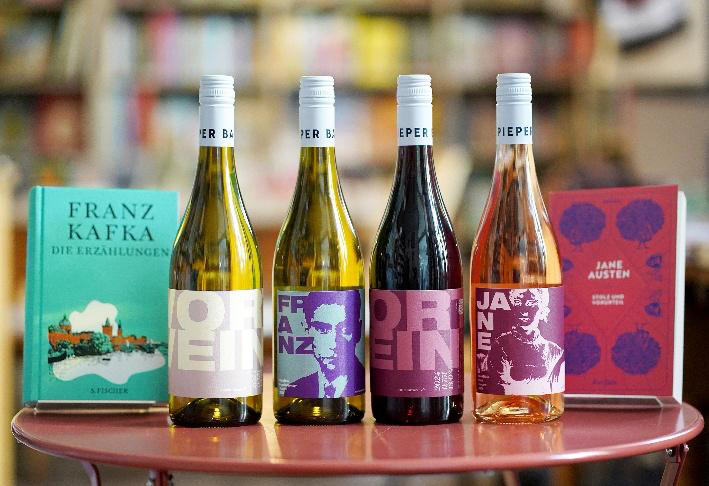 Gleich einen eigenen „Literatur-Wein“, den WortWein, haben sechs unabhängige Buchhandlungen gemeinsam entwickelt und vertreiben diesen auf wortwein.de und in ihren Läden. Die Grundlage bilden vier Weine des familiengeführten Weinguts Pieper Basler in Offenburg.
