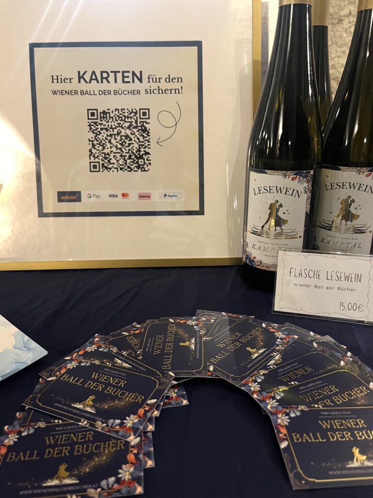 Neben dem Ball gibt es in Österreich aber sogar auch gleich ein ganzes Festival Literatur & Wein vom 16. bis 19. April 2026. Das Stift Göttweig, das Literaturhaus Niederösterreich und die Artothek Niederösterreich (alle bei Furth bei Göttweig bzw. Krems an der Donau) dienen als Veranstaltungsorte des Festivals, bei dem man zu Lesungen Degustationsbons für eine Weinauswahl verschiedener Winzer:innen zum Preis von EUR 3,- (Einzelbon) bzw. EUR 25,- (10er Block) erweben und an den Weinständen einlösen kann. Zur Website.