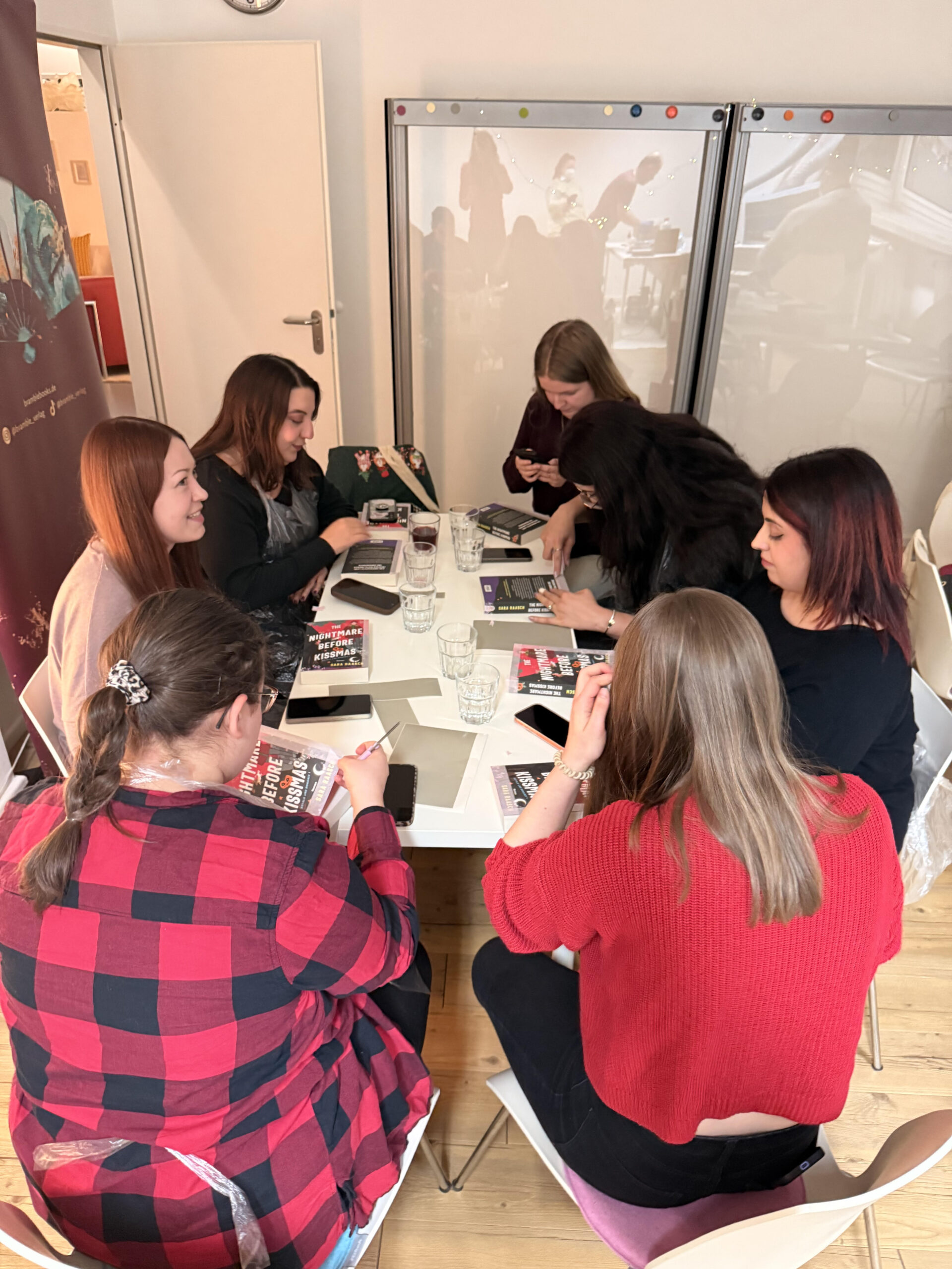 Letzten Donnerstag feierte der Bramble Verlag in München eine kreative Premiere: den ersten exklusiven Farbschnitt-Workshop für Content Creator:innen. Fünfzehn Blogger:innen hatten die Gelegenheit, ausgewählte Titel des Verlages – darunter die Bestseller The Stars are Dying und den Überraschungserfolg The Nightmare before Kissmas – mit einem individuell gestalteten Farbschnitt zu veredeln.