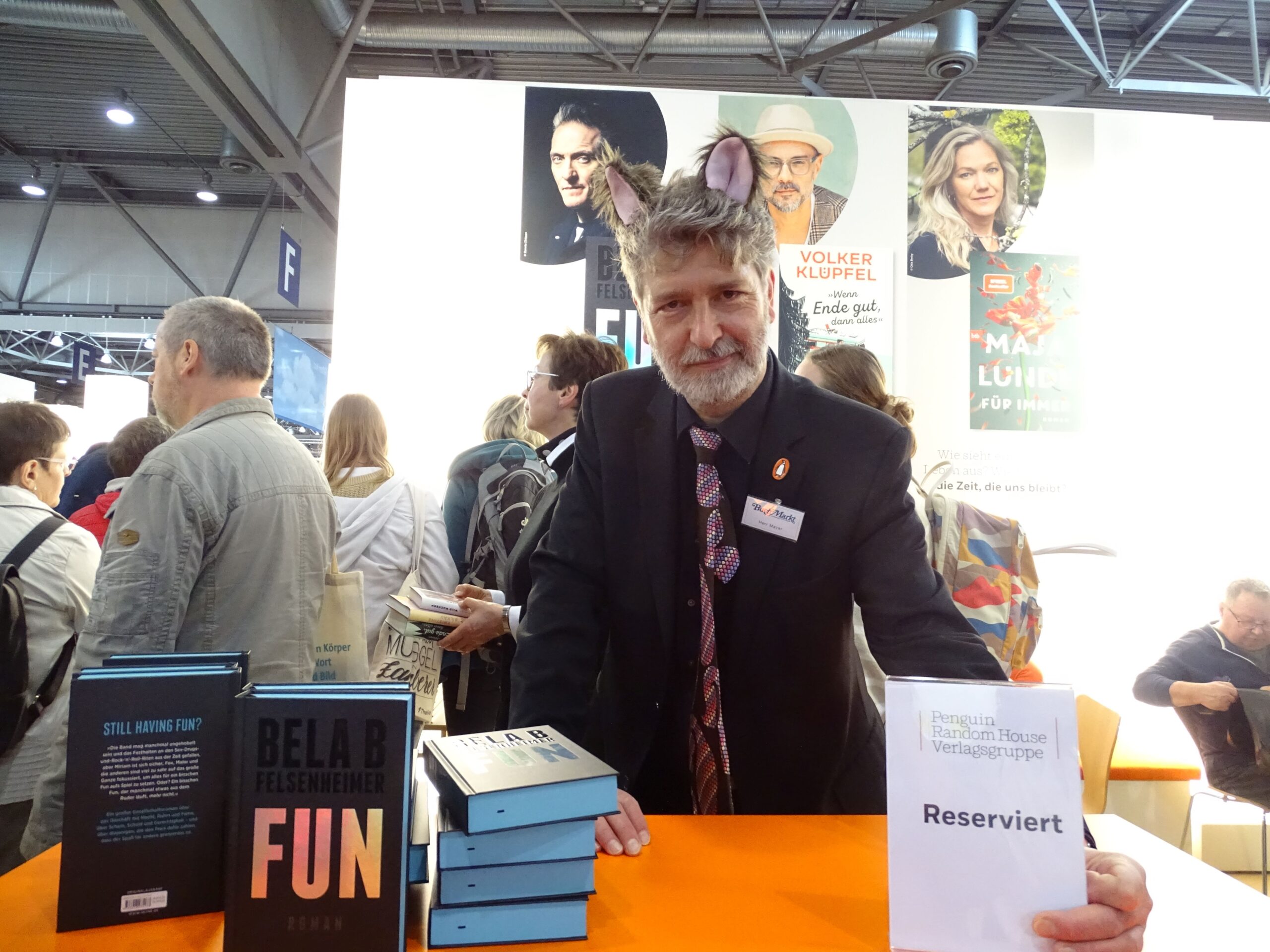 Ich kapere sodann das Infopult bei Penguin Random House, und hier bleibe ich heute, bis ich gehe.