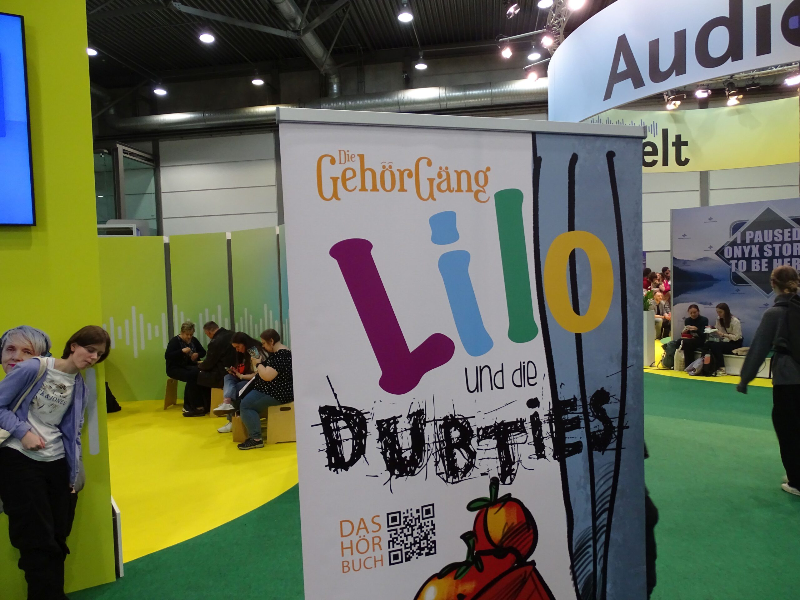 Die GehörGäng präsentiert sich mit Stand und Hörbeispielen in der Audiowelt. Es gibt dort aber nicht nur Kinder-Audio, sondern auch Historisches, Politisches und anderweitig Erwachsenes.