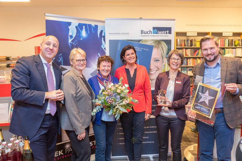 Am 8. Oktober wurde die Auszeichnung in einer Feierstunde in der Buchhandlung gewürdigt. Vertreter der EK/servicegroup, u.a. Vorstandsmitglied Martin Richrath, Dr. Claudia Wasser (Jury-Mitglied und Chefredakteurin Trend&Style, KitchenTrend) und Buchwert-Geschäftsführer Michael Rosch ließen es sich nicht nehmen, die begehrte Trophäe persönlich zu überreichen (siehe Foto).
