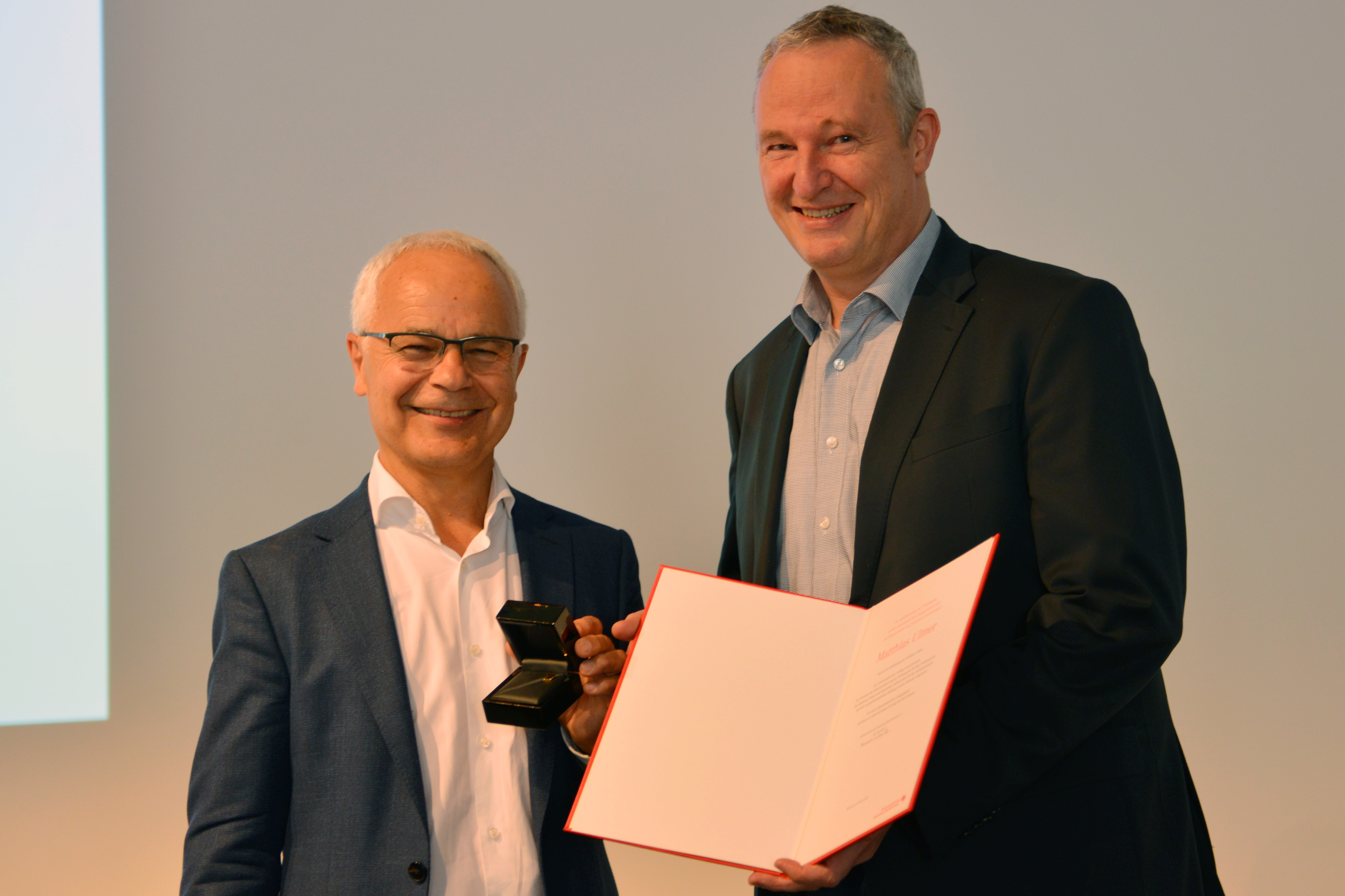 „Matthias Ulmer ist es zu einem großen Teil zu verdanken, dass die Idee der Zukunftskonferenz realisiert wurde, die der Börsenverein dreimal veranstaltet hat. Die daraus hervorgehende Verbandsreform hat er engagiert und mit Leidenschaft mitgestaltet. Sein jahrelanges Engagement im Ehrenamt – u.a. für den Verlegerausschuss, den Friedenspreis oder den Arbeitskreis Ratgeberverlage – und für die politische Interessenvertretung zum Urheberrecht oder zur Publikationsfreiheit hat deutliche Spuren hinterlassen“, sagte Heinrich Riedmüller. Matthias Ulmer, Verleger des Eugen Ulmer Verlages, war von 2006 bis 2018 Mitglied des Verleger-Ausschusses, von 2009 bis 2012 sein stellvertretender Vorsitzender sowie von 20012 bis 2018 Vorsitzender und somit auch Vorstandsmitglied des Börsenverein. Von 2013 bis 2018 war er Mitglied im Stiftungsrat für den Friedenspreis sowie Mitglied im Ehrungs-Ausschuss. Seit 2010 sitzt er im Beirat der Deutschen Bibliothek.